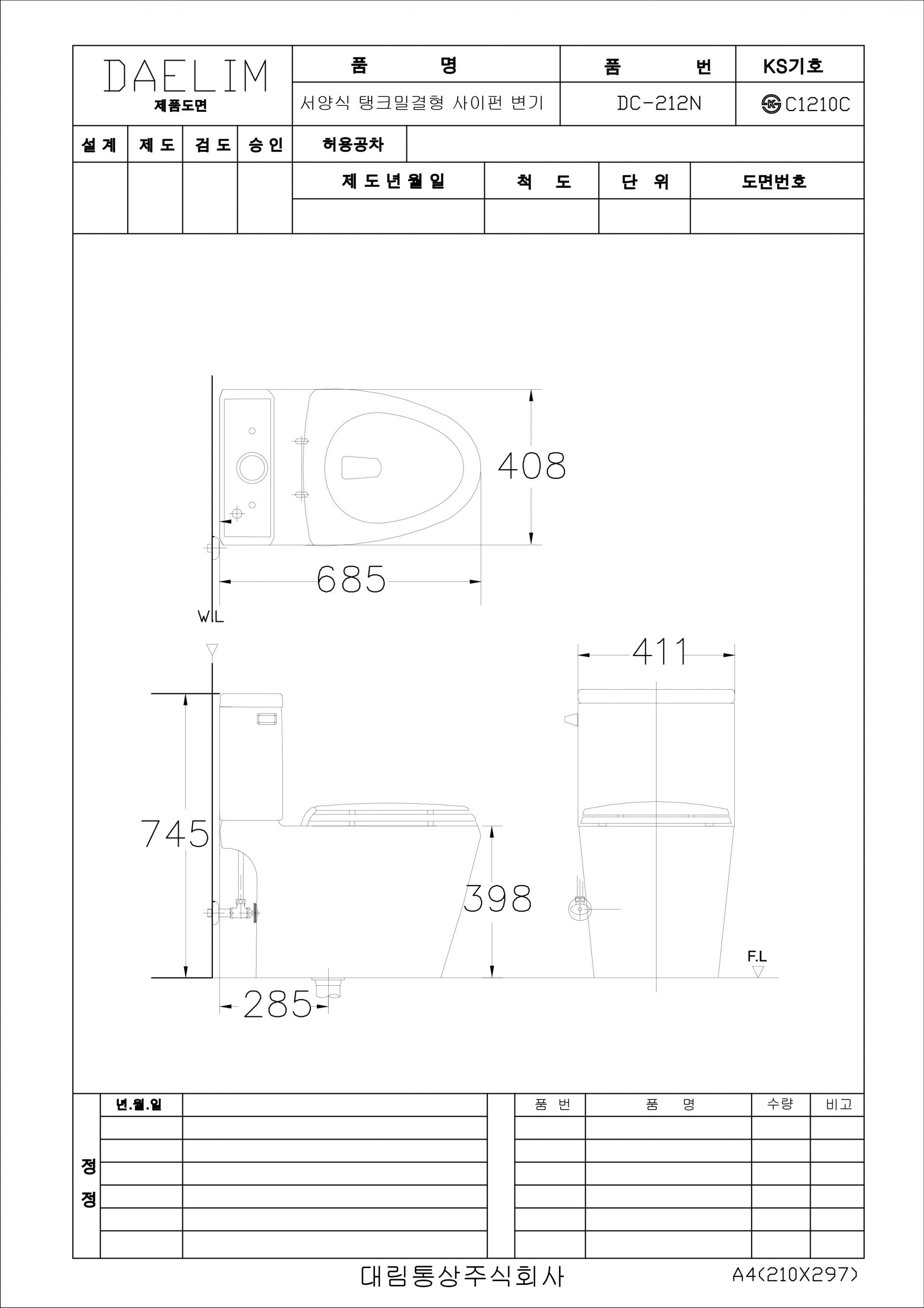 대림 도비도스 DC-212N DC-212 DC212 치마형 투피스 양변기