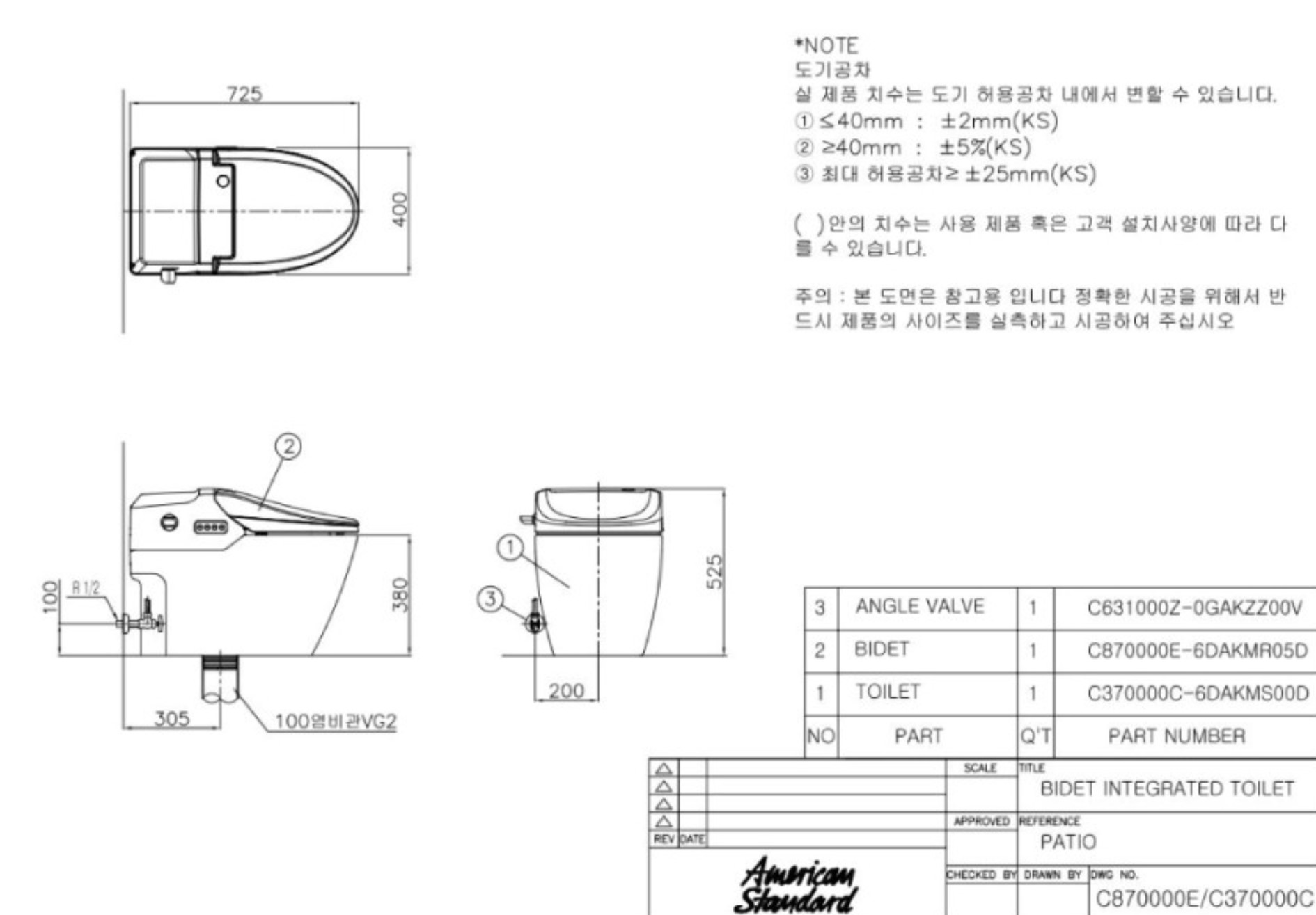 MODEL 아메리칸스탠다드 8700 / 3700 파티오 비데 일체형 양변기