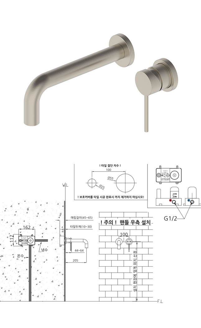 FONTANA 폰타나 에르사 에르사 L5317 - BN(Brushed Nickel) 국산 유로피안 감성 매립세면수전