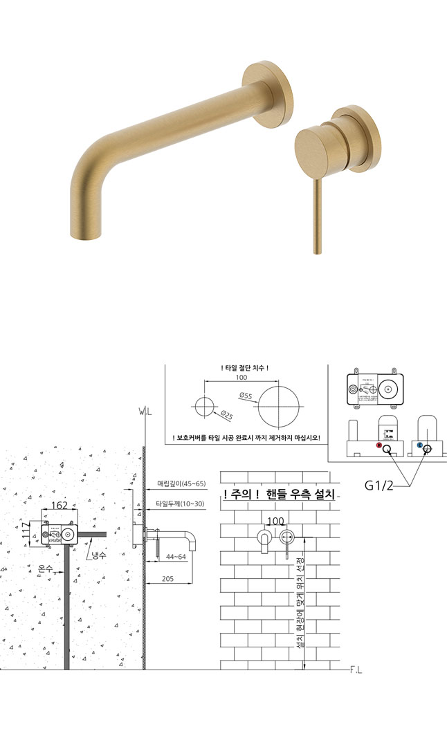 FONTANA 폰타나 에르사 L5317 - BG(Matt Gold) 국산 유로피안 감성 매립세면수전