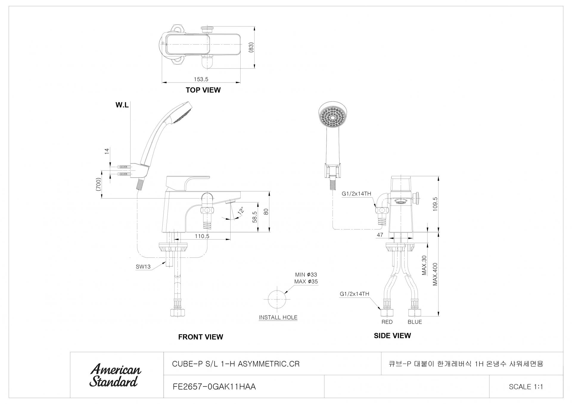 아메리칸스탠다드 FE 2611 큐브-P 원홀 샤워겸용 세면수전