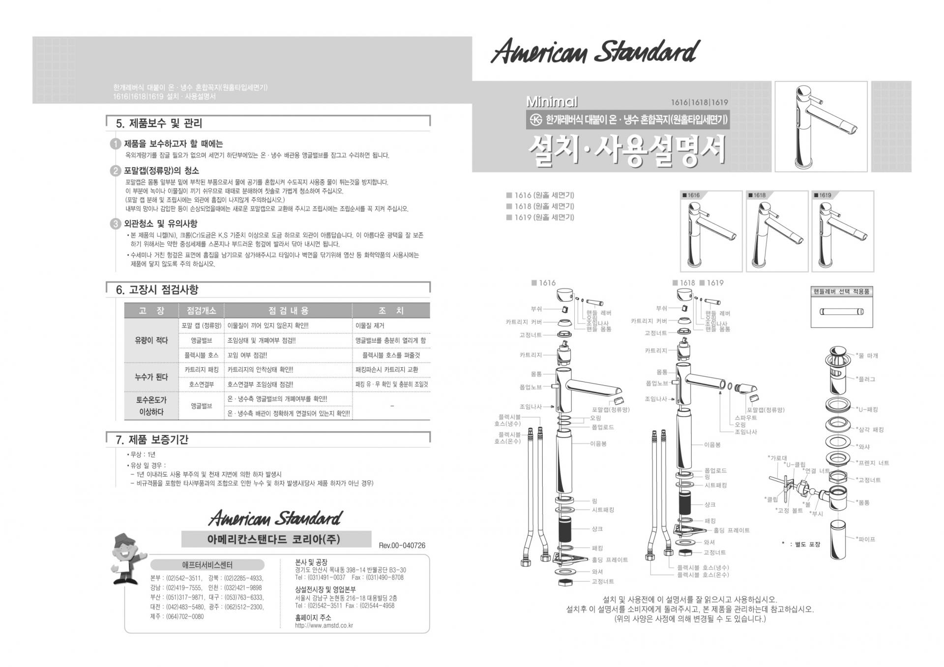 아메리칸스탠다드 1616 미니말 탑볼 원홀 세면수전