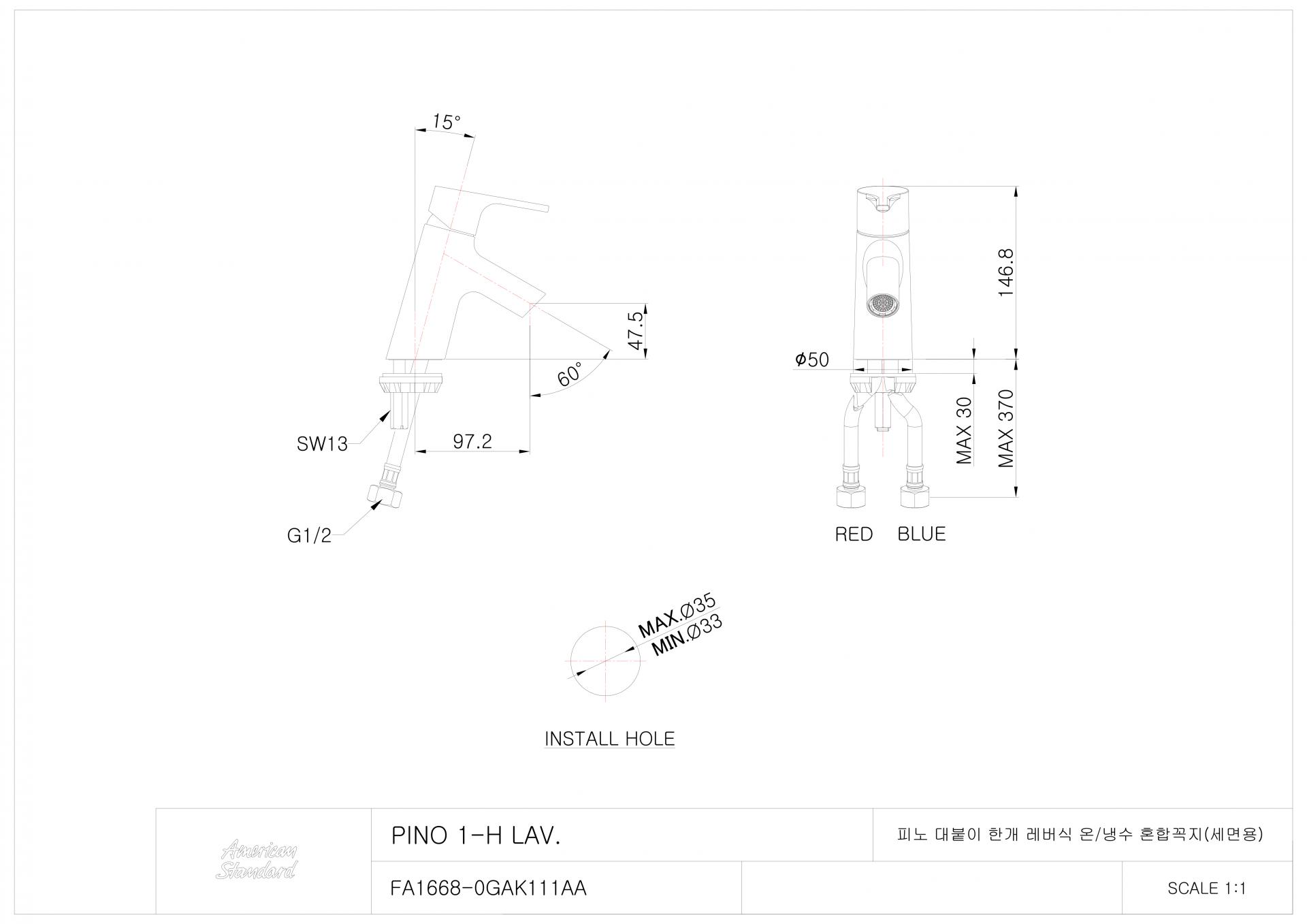 아메리칸스탠다드 1668 피노 원홀 세면수전