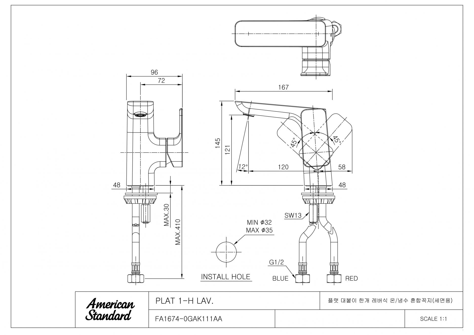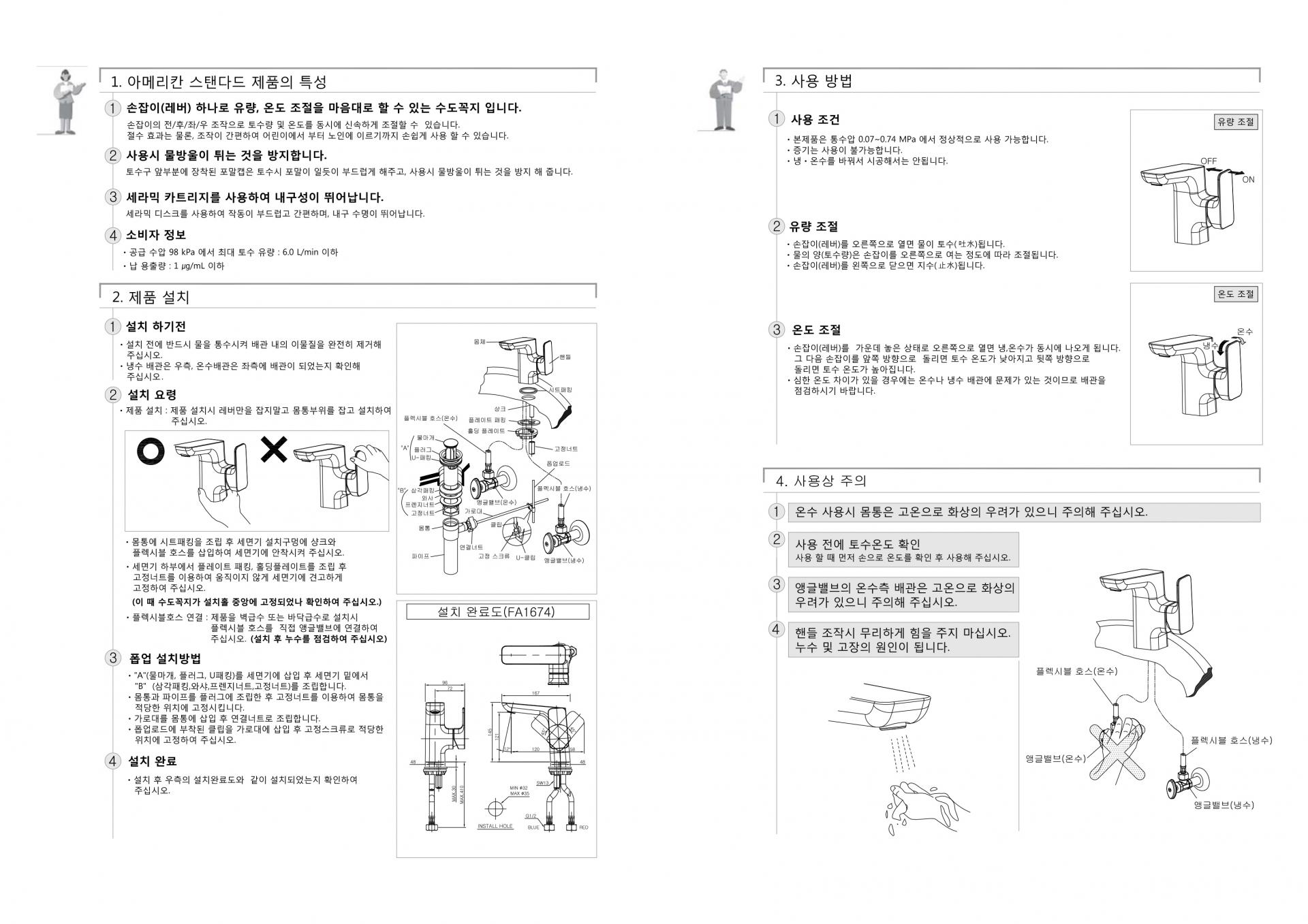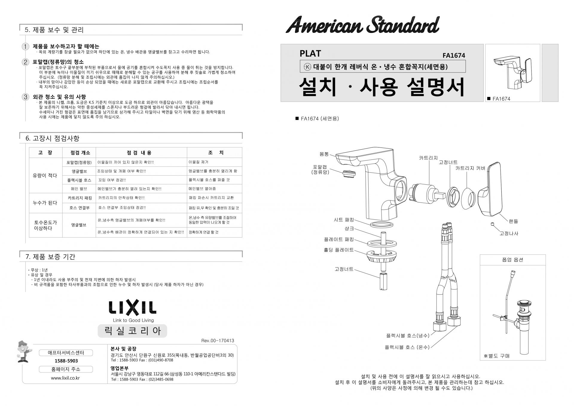 아메리칸스탠다드 1674 플랫 원홀 세면수전