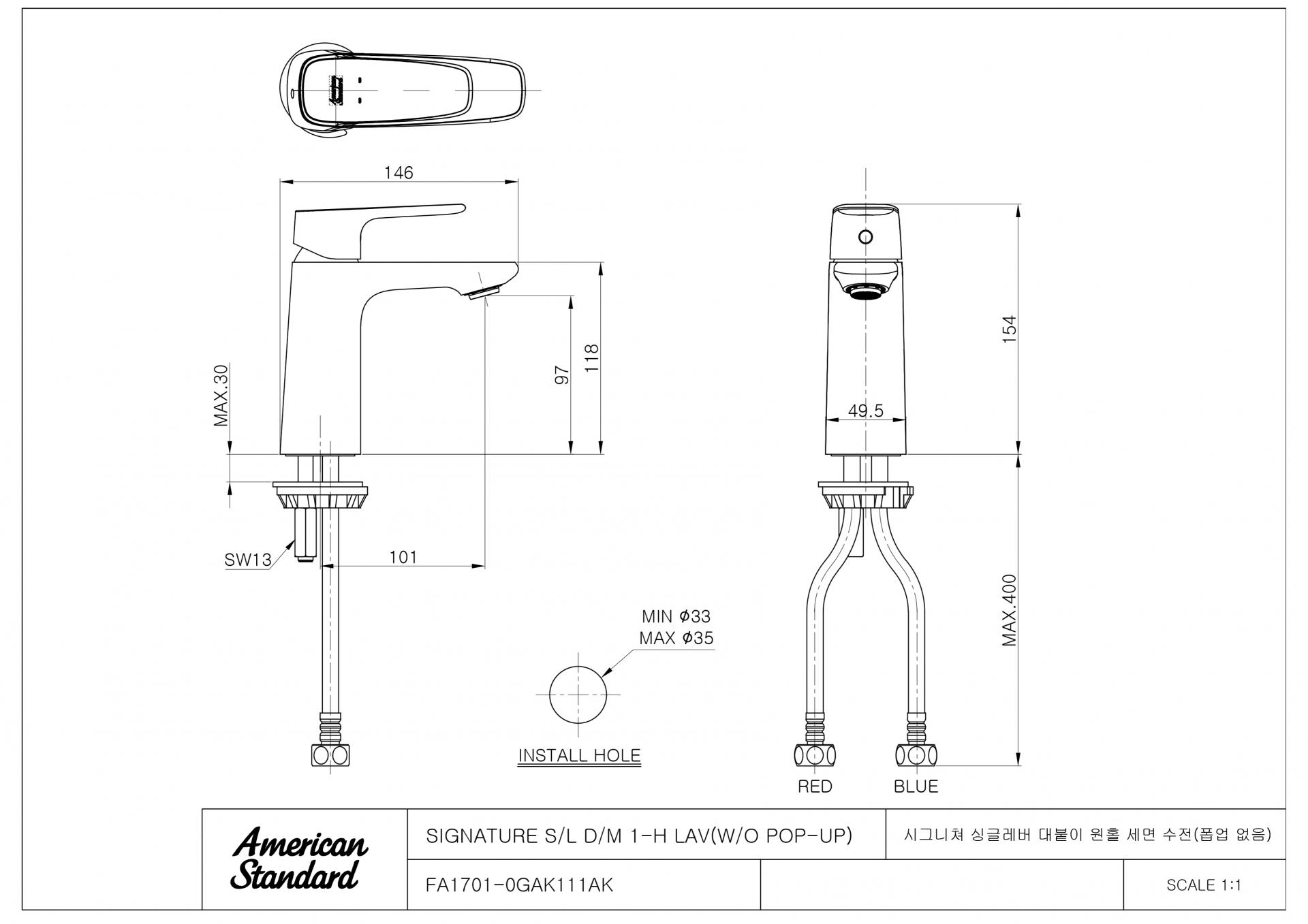 아메리칸스탠다드 1701 시그니쳐 원홀 세면수전