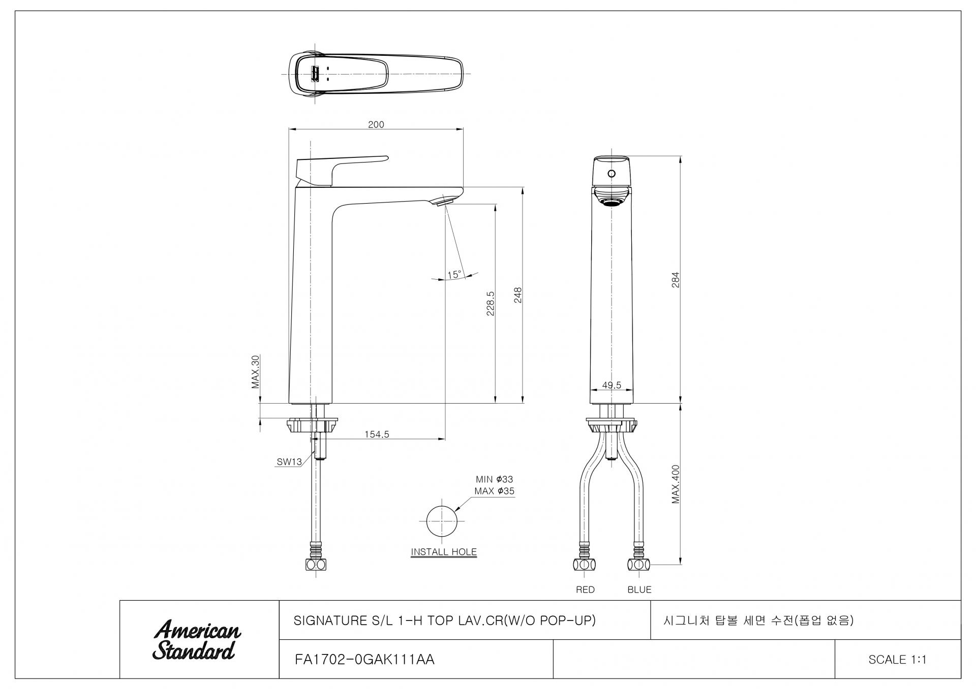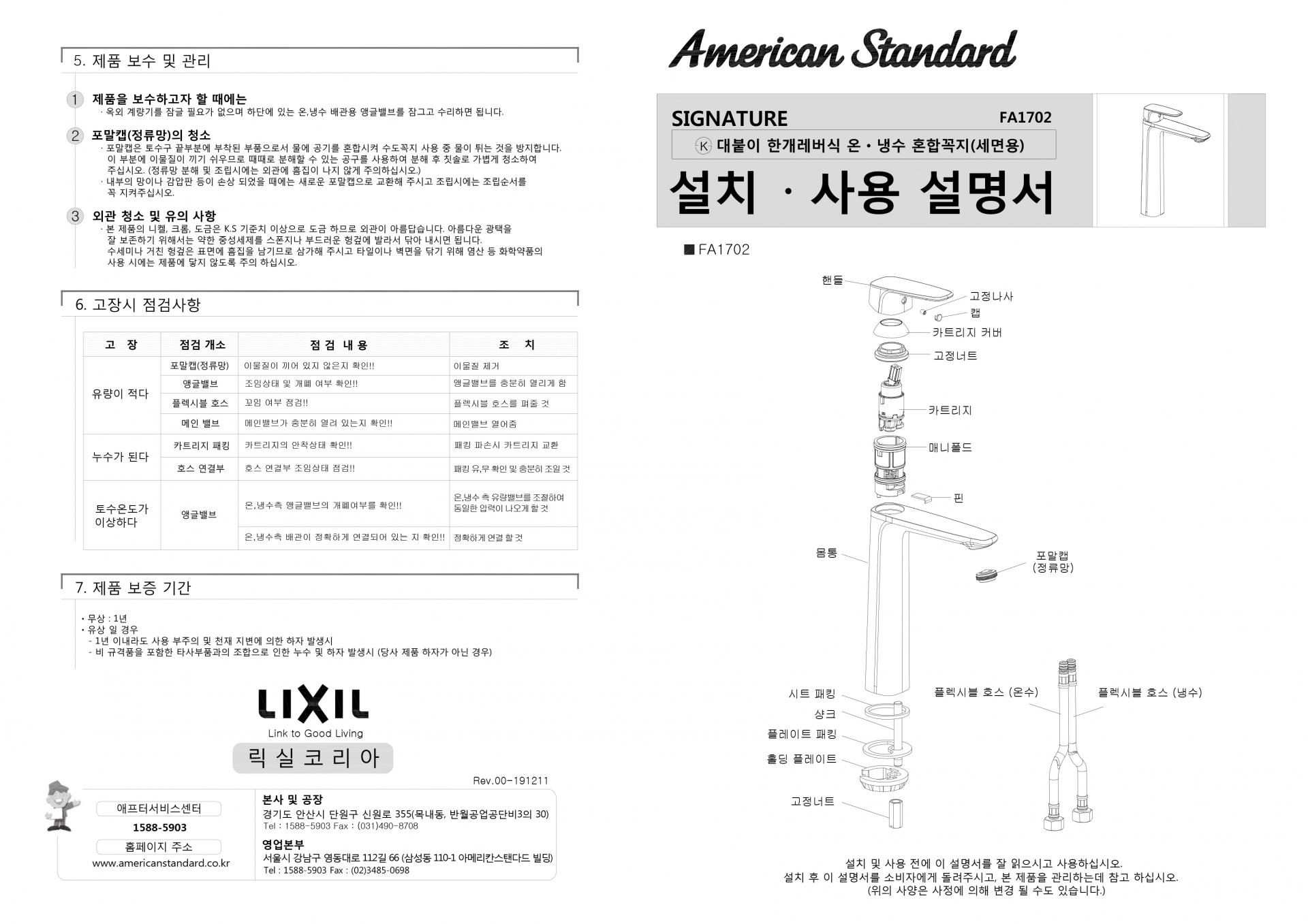 아메리칸스탠다드 1702 시그니쳐 탑볼 원홀 세면수전
