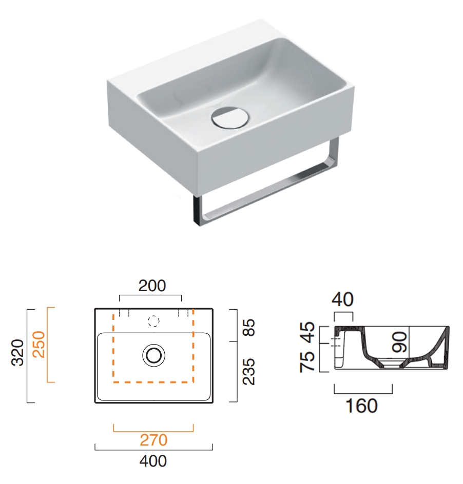 벽걸이 세면기 / 수건걸이 제외/ 수전, 폽업 및 하부부속 별도