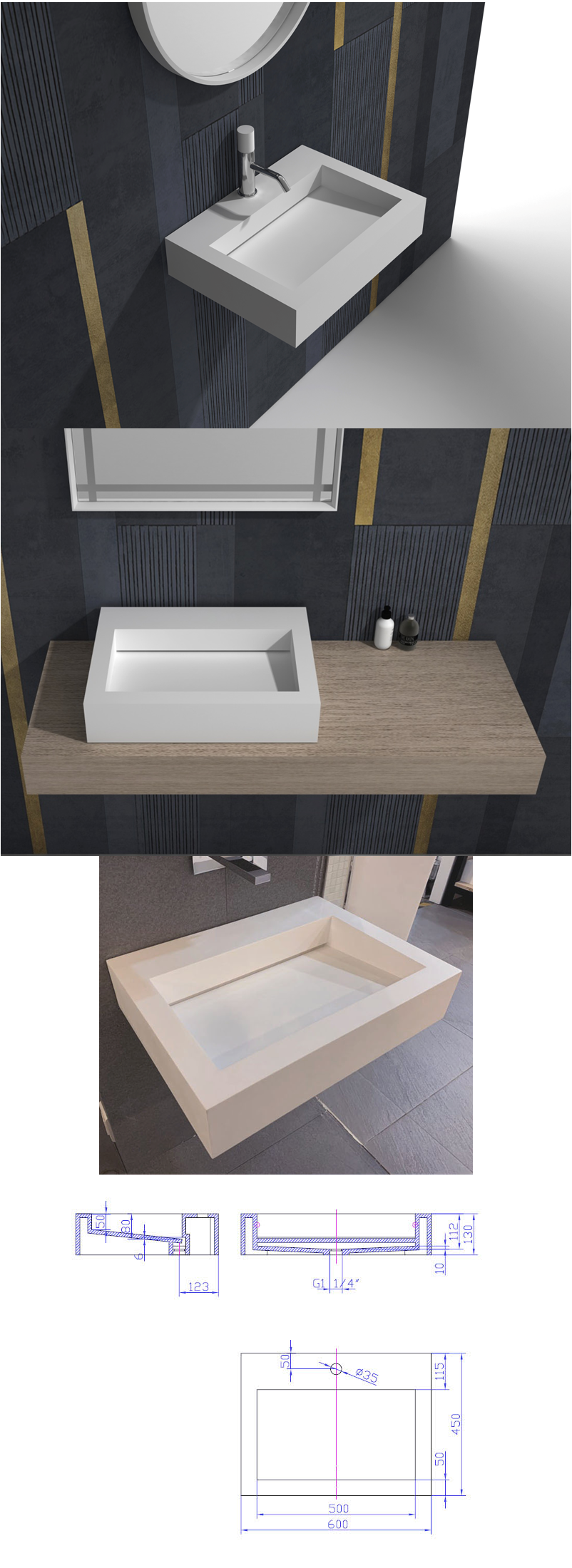 [istone]WISDOM 인조대리석 세면기 WD - 38596 F20 액상아크릴 세면대 600x450x130mm