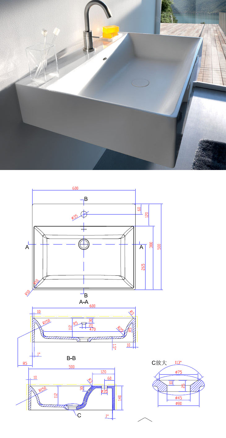 [istone]WISDOM 인조대리석 세면기 WD - 38114 액상아크릴 세면대 600X500X140mm