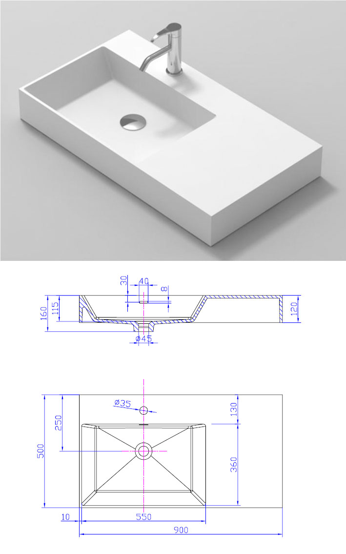 [istone]WISDOM 인조대리석 세면기 WD - 38511 - L (좌볼) 액상아크릴 세면대 900X500X120mm