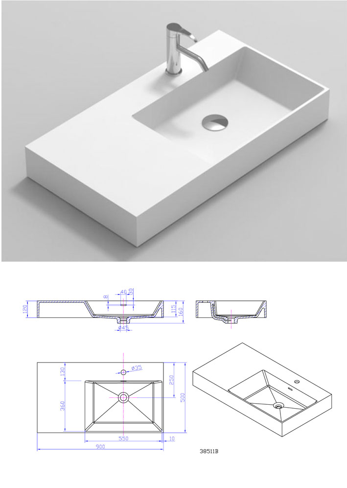 [istone]WISDOM 인조대리석 세면기 WD - 38511 - R (우볼) 액상아크릴 세면대 900X500X120mm