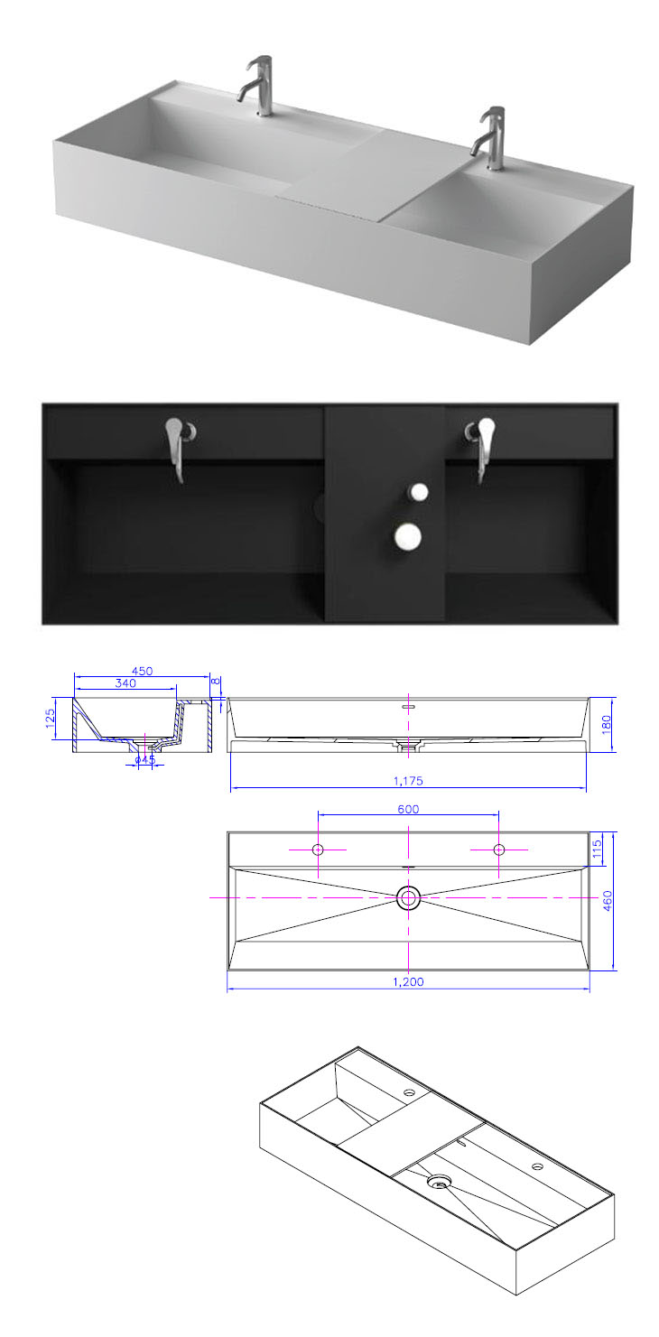 [istone]WISDOM 인조대리석 세면기 WD - 38333 액상아크릴 세면대 1200X460X180mm