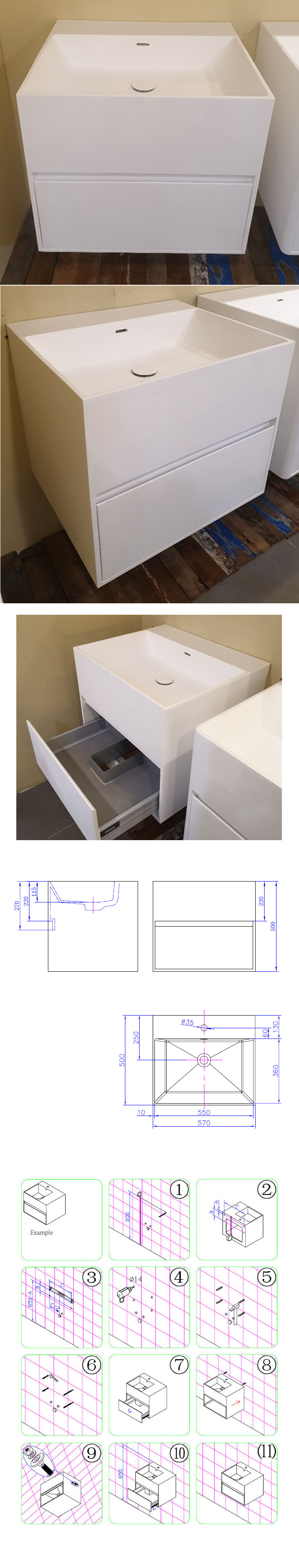 [istone]WISDOM 인조대리석 서랍장 세면기 WD - 38596 F21 액상아크릴 서랍장세면대 570x500x500mm