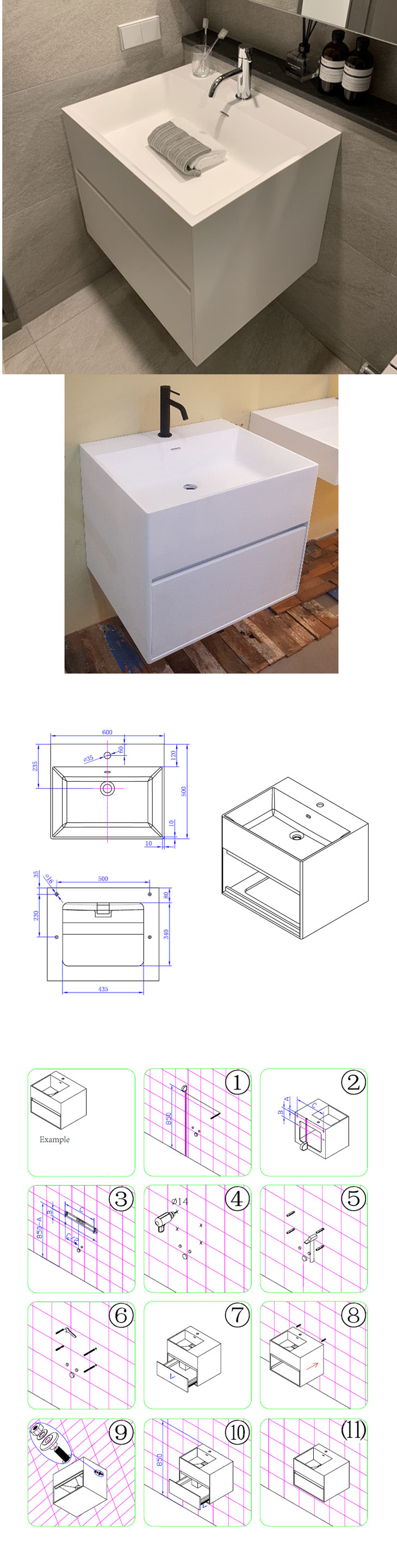 [istone]WISDOM 인조대리석 서랍장 세면기 WD - 38426 F4 액상아크릴 서랍장세면대 600x500x500mm