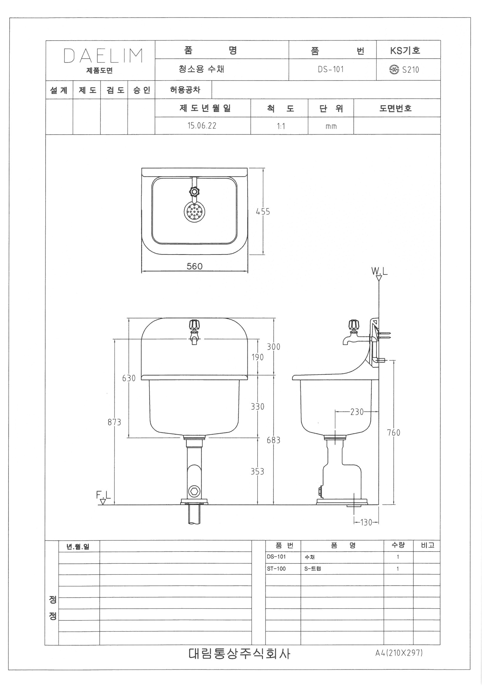 대림 DS101 DS-101 청소용 수채(1구,2구)