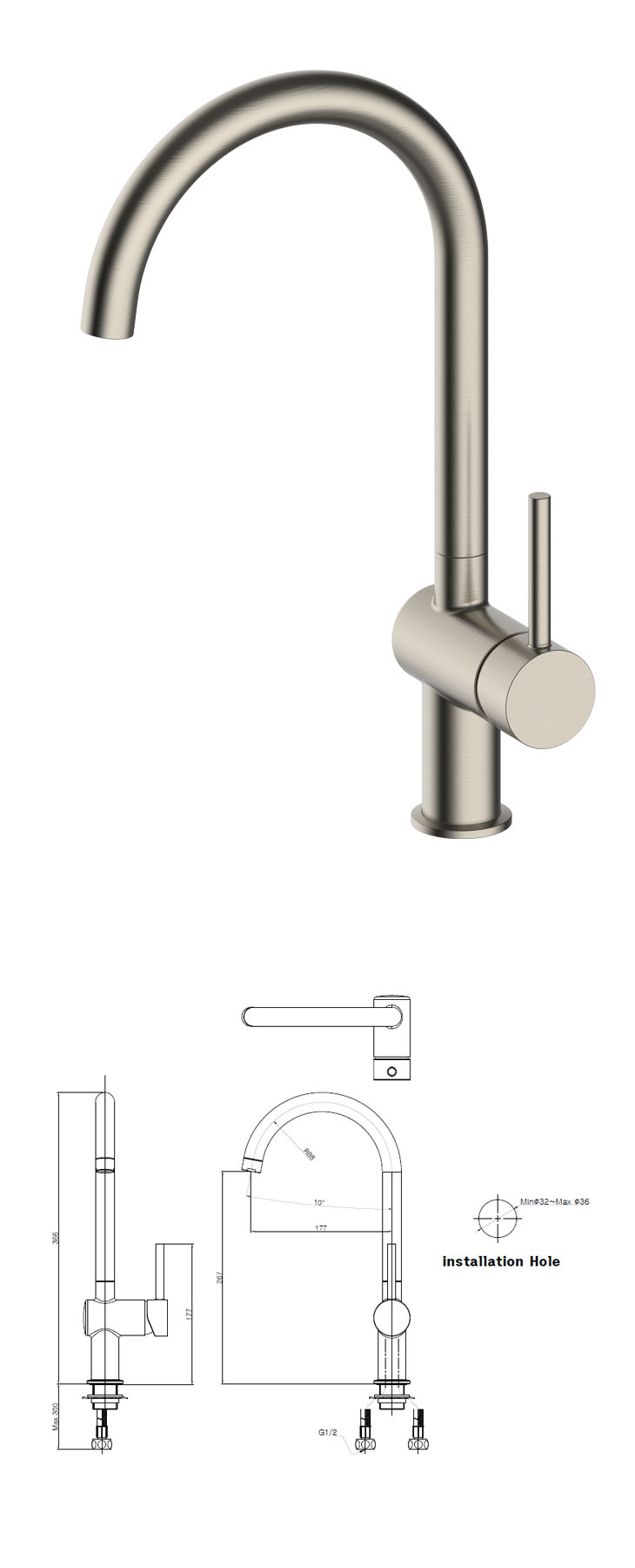 FONTANA 폰타나 L4407U - BN(Brushed Nickel) 국산 유로피안 감성 거위목 탑볼수전