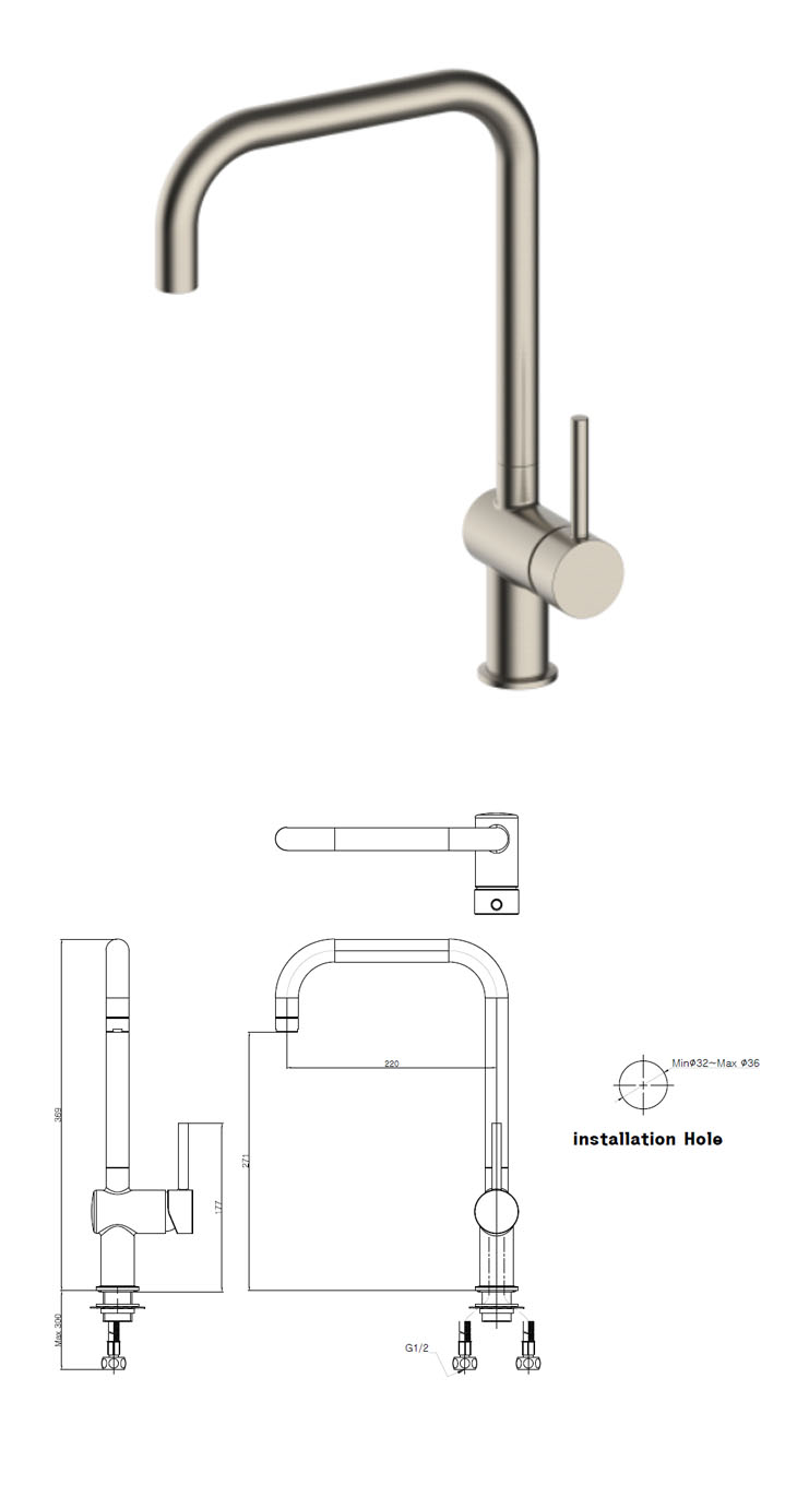 FONTANA 폰타나 L4407 - BN(Brushed Nickel) 국산 유로피안 감성 거위목 탑볼수전